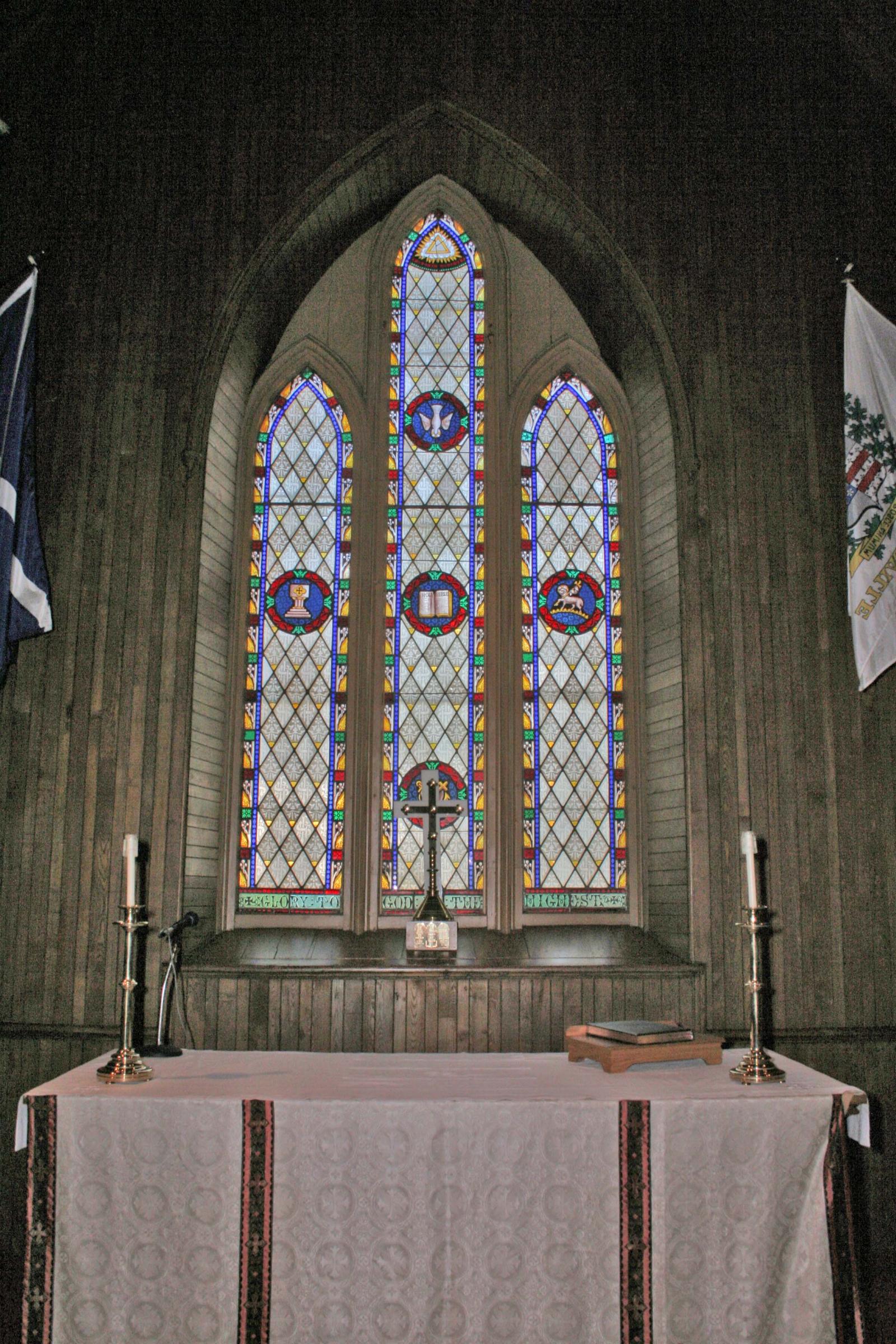 Les éléments caractéristiques de l’église St. George liés à ses valeurs historique et architecturale comprennent notamment : sa situation sur un terrain paysager dans un ensemble institutionnel comprenant un presbytère, une salle communautaire et un cimetière; le muret en pierre situé entre l’édifice et la voie publique; son volume, dont la nef de plan rectangulaire terminée par un chœur en saillie au chevet plat, la sacristie en appentis sur le mur latéral nord du chœur et le toit aigu à deux versants droits; sa façade, aménagée dans l’un des murs pignons et la tour-clocher centrale hors œuvre; ses matériaux, dont la maçonnerie en moellon des murs et de la tour, la couverture en ardoise, l’ornementation en pierre de taille du portail; ses ouvertures, dont la porte en bois à double vantail du portail surmontée d’un tympan de menuiserie, les fenêtres en bois à arc brisé, le triptyque du chevet et les vitraux; l’ornementation, dont les voussures et l’ébrasement du portail, le crénelage de la tour et les contreforts; le clocher, dont la chambre des cloches de plan carré percée d’arcades à arc brisé avec abat-son. L’orgue, de l’entreprise Casavant et Frères, est de type Opus 1554 et il date de 1937. Les vitraux sont de John C. Spencer.